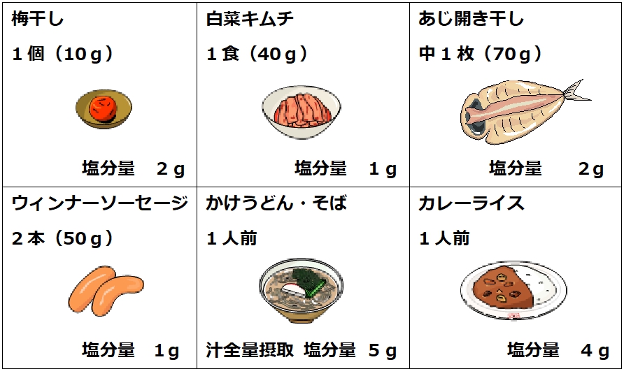 食品の塩分量はどのくらいでしょうか?その目安を以下の例で示します。