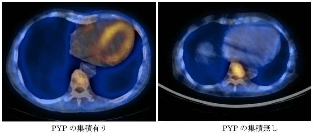 心アミロイドーシス診断目的で行います。ただし、心筋に沈着するアミロイド蛋白の種類によってPYPの集積度が異なるという報告があり、心筋生検で陽性であってもピロリン酸シンチグラフィで必ずしも集積があるとは限りません。