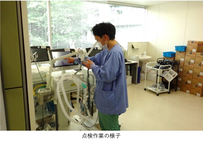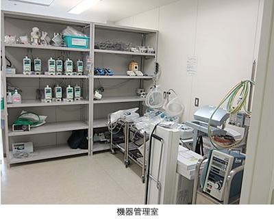 当院では専門知識・技術を備えている臨床工学技士が医療機器安全管理責任者を担当し、ME室が汎用的な医療機器から専門機器を管理しています。具体的には貸出・返却、保守・点検、備品管理(購入・廃棄)、教育、環境整備、情報提供などの一括した業務を行っています。これらの業務によって臨床現場へ信頼性の高い機器を過不足無しに供給するとともに、正しい資産管理、経済効率性、安全性を高める役割を果たします。