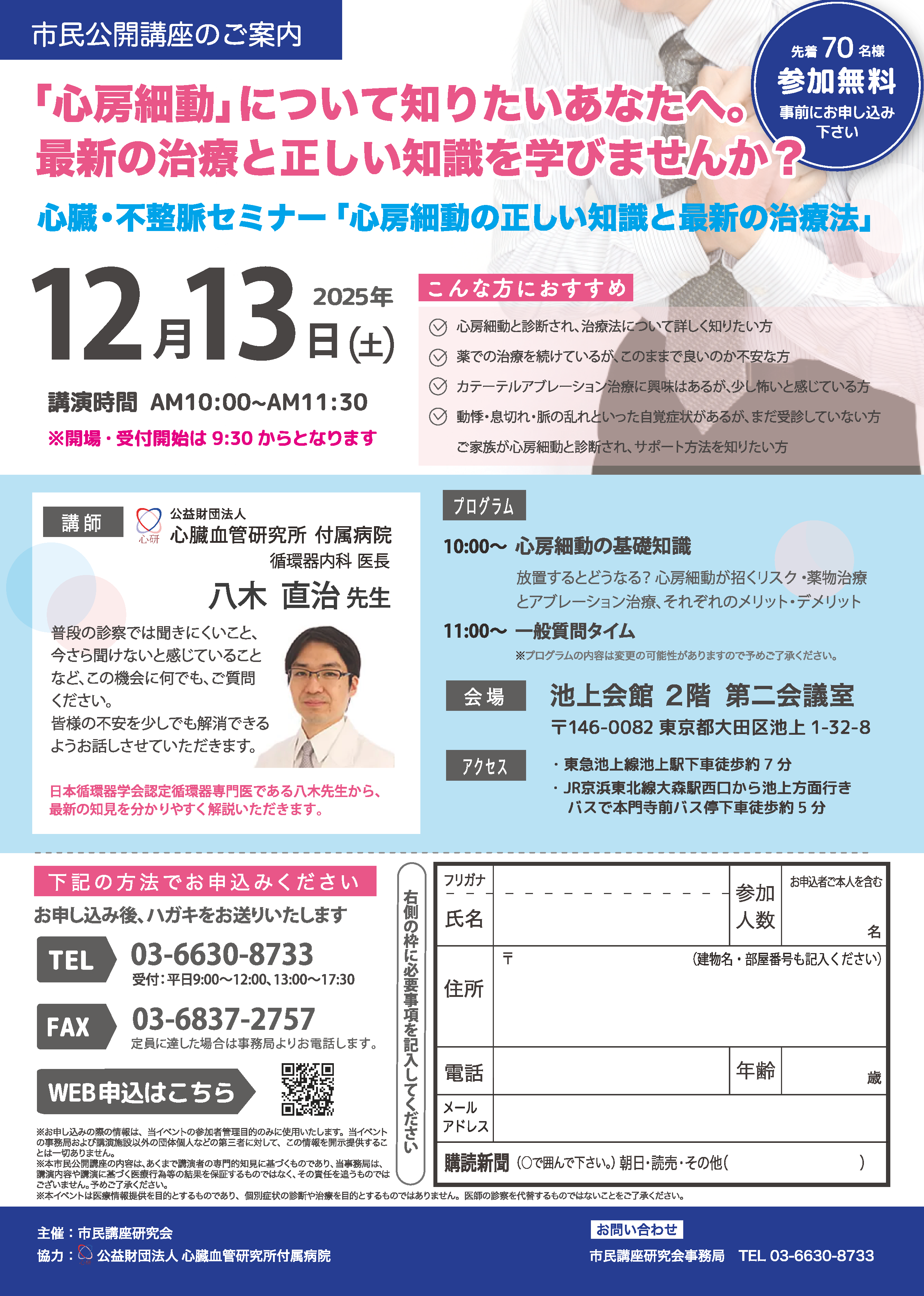 市民公開講座「心房細動の正しい知識と最新の治療法」開催のご案内