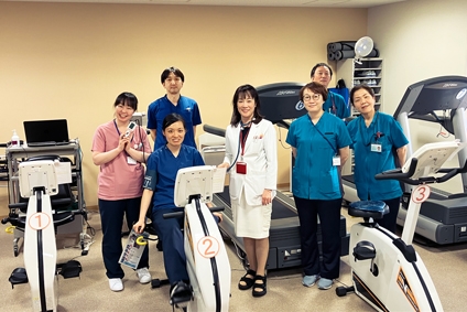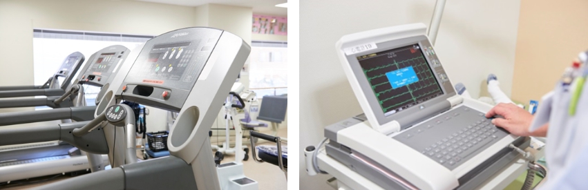 心臓病の患者様が、自分の判断で強い運動を行うことは危険です。心臓リハビリテーションを開始する際には心肺運動負荷検査(CPX)を行っていただき、その結果をもとに専門医が個々の患者様に適切な運動の処方箋を作成します。ストレッチ体操、有酸素運動(歩行(トレッドミル)や自転車こぎ(エアロバイク))、筋力(レジスタンス)トレーニング等を30~60分程度行います。